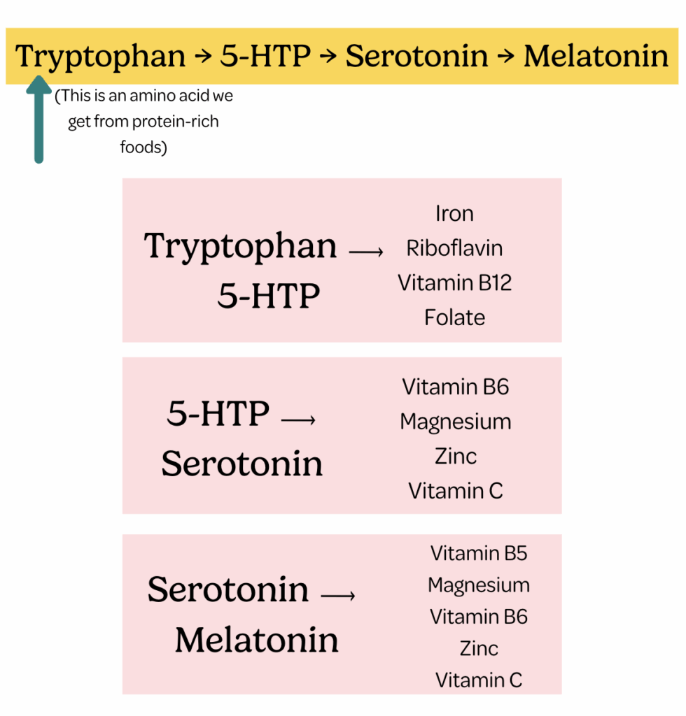 Tryptophan → 5-HTP → Serotonin → Melatonin
